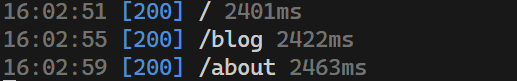 It’s also pretty slow loading routes, this is how long it took to go from each route in my blog: